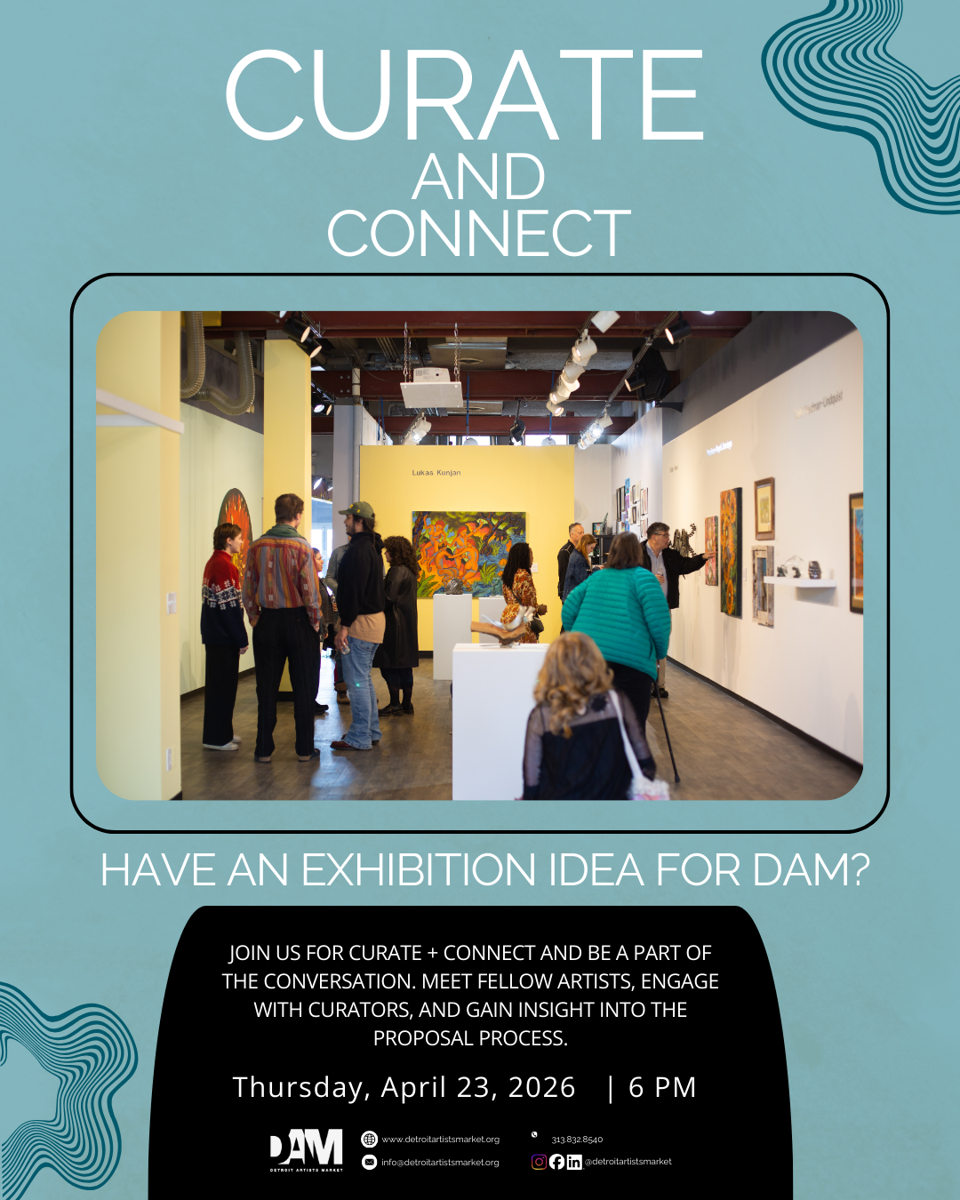 Interested in curating an exhibition at DAM? This networking event brings artists and curators together to exchange ideas, explore potential collaborations, and discuss exhibition concepts with DAM staff, the exhibitions committee and past curators.